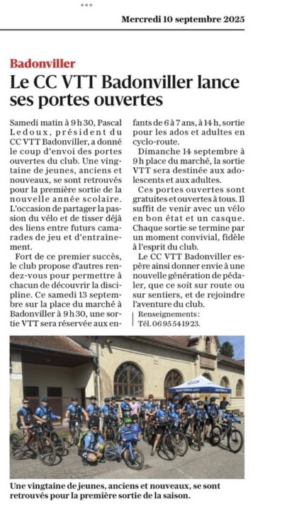 11 décembre 2025 11 décembre 2025Les Badonviller sur la Cyclo de la Mirabelle organisé parLes Badonviller sur la Cyclo de la Mirabelle organisé par le Team Macadam’s Cowboys … En voir plus