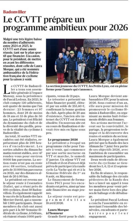 19 novembre 2025 19 novembre 2025Merci à l’Est Républicain pour la mise en avant du CC VTTMerci à l’Est Républicain pour la mise en avant du CC VTT dans la presse ce jour 🙌 Merci également à nos bénévoles, fidèles partenaires et […]
